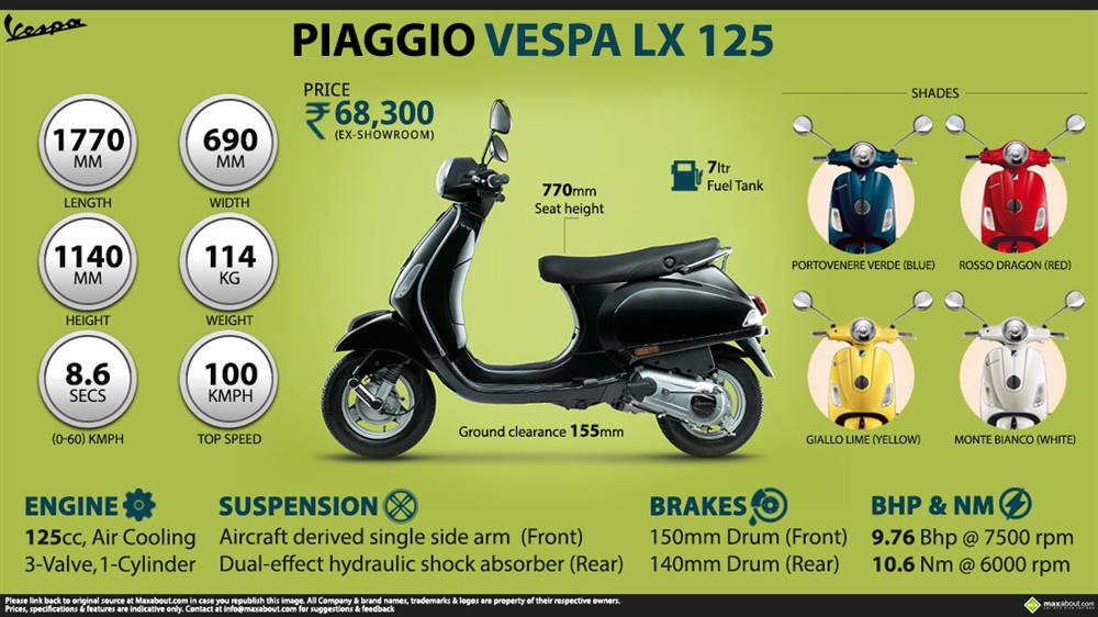 Explore piaggio vespa price in india, specs, features, mileage, piaggio vespa images, piaggio news, vespa review and all other piaggio bikes vespa piaggio lx 125. The vespa lx is powered by a 125cc single cylinder unit that produces 10bhp and 10nm of torque.